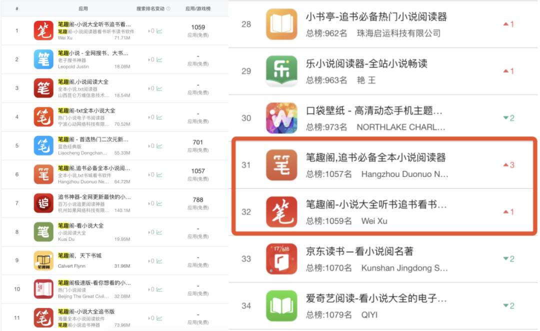 网文圈有个盛传许久的段子:写小说怕两件事,一件是笔趣阁有你的书,另一件是笔趣阁没你的书。连笔趣阁都不盗的书,作者会被嘲笑没热度。有网友调侃,一本小说好不好,看的不是榜单,而是有没有出现在笔趣阁。知乎答主“奉义天涯”曾说,自己的书因题材受限,推荐不多,他去盗版网站是为了看真实的评论。更奇葩的是,笔趣阁并没有盗版的觉悟,它堂而皇之地攻占了手机的应用商店。这还不算,笔趣阁高居阅读类App下载排行榜前几名,名次在持续攀升。